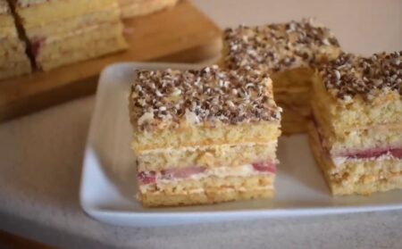 - Poté vezmeme špejli, zapíchneme do těsta a jezdíme sem a tam po celém plechu, aby se vrstvy trochu spojily.