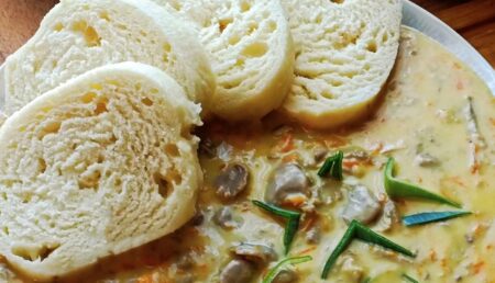Podáváme s bramborami, šťouchanými brambory anebo s čerstvým chlebem.