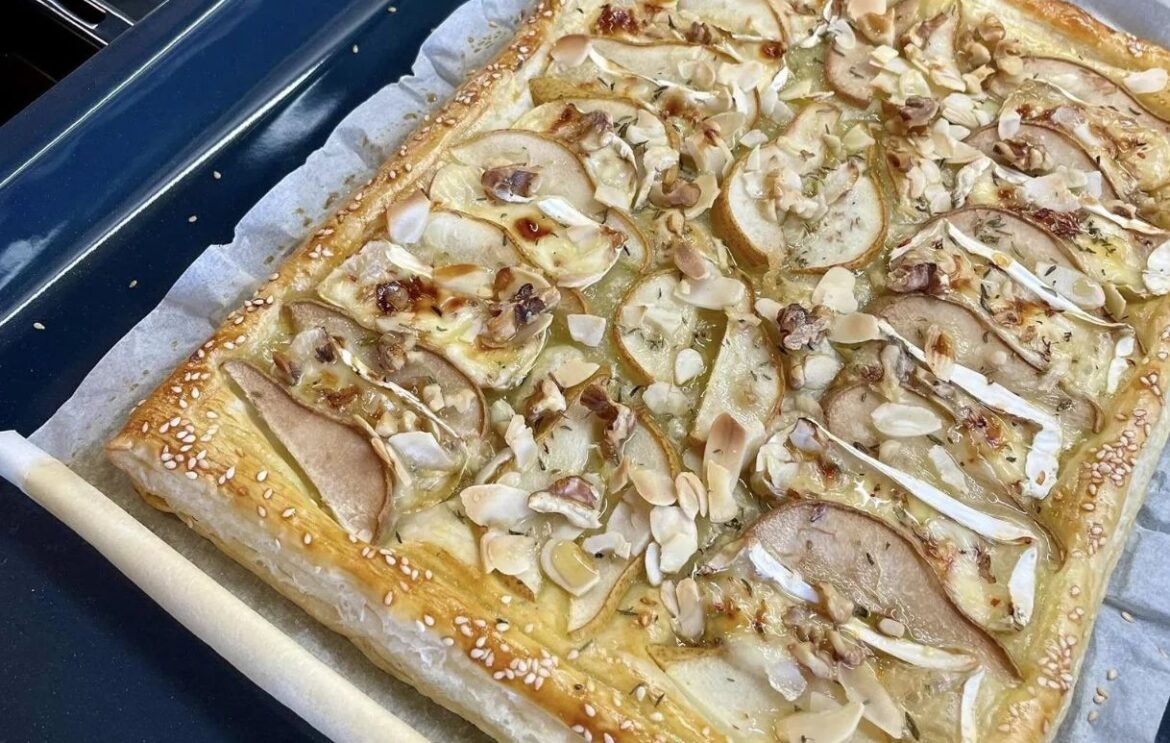 Recept na sladko-slaný hruškový koláč z listového těsta se sýrem a ořechy
