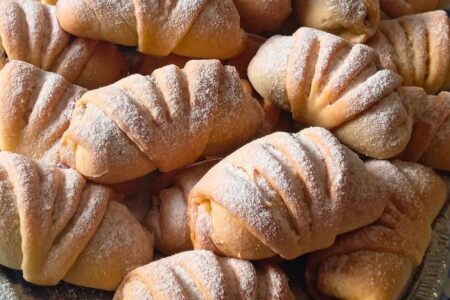 - Pro snadné krájení použijte nůž na pizzu: Když máte vytvořený dlouhý váleček s náplní, krájení na špalíčky je s ostrým kulatým nožem na pizzu překvapivě rychlé a přesné. Krájejte rychlými, kolmými pohyby.